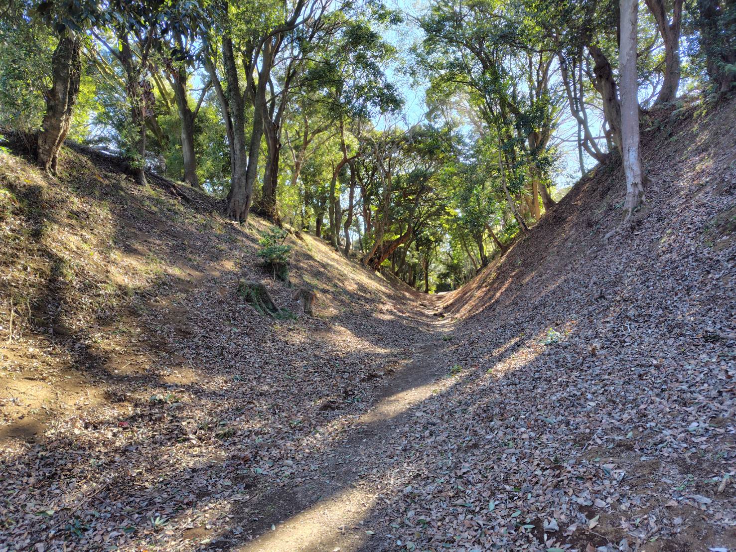 戦国時代最後の巨城といわれる小田原城には城郭と城下町を囲む壮大な堀と土塁がありました。これが総構(そうがまえ)で全長は周囲9㎞に及び、これまでの発掘調査で明らかになっている堀は、幅16m、深さ10m以上の規模を有するものです。堀底には堀障子と呼ぶ障壁が造られていました。3ヶ月の籠城戦を可能にしたのは、この総構の存在があったからとされます。この遺構の一部が現在も残り、公開されています。東西の大堀切の中を歩いて当時の城の規模を実感できます。