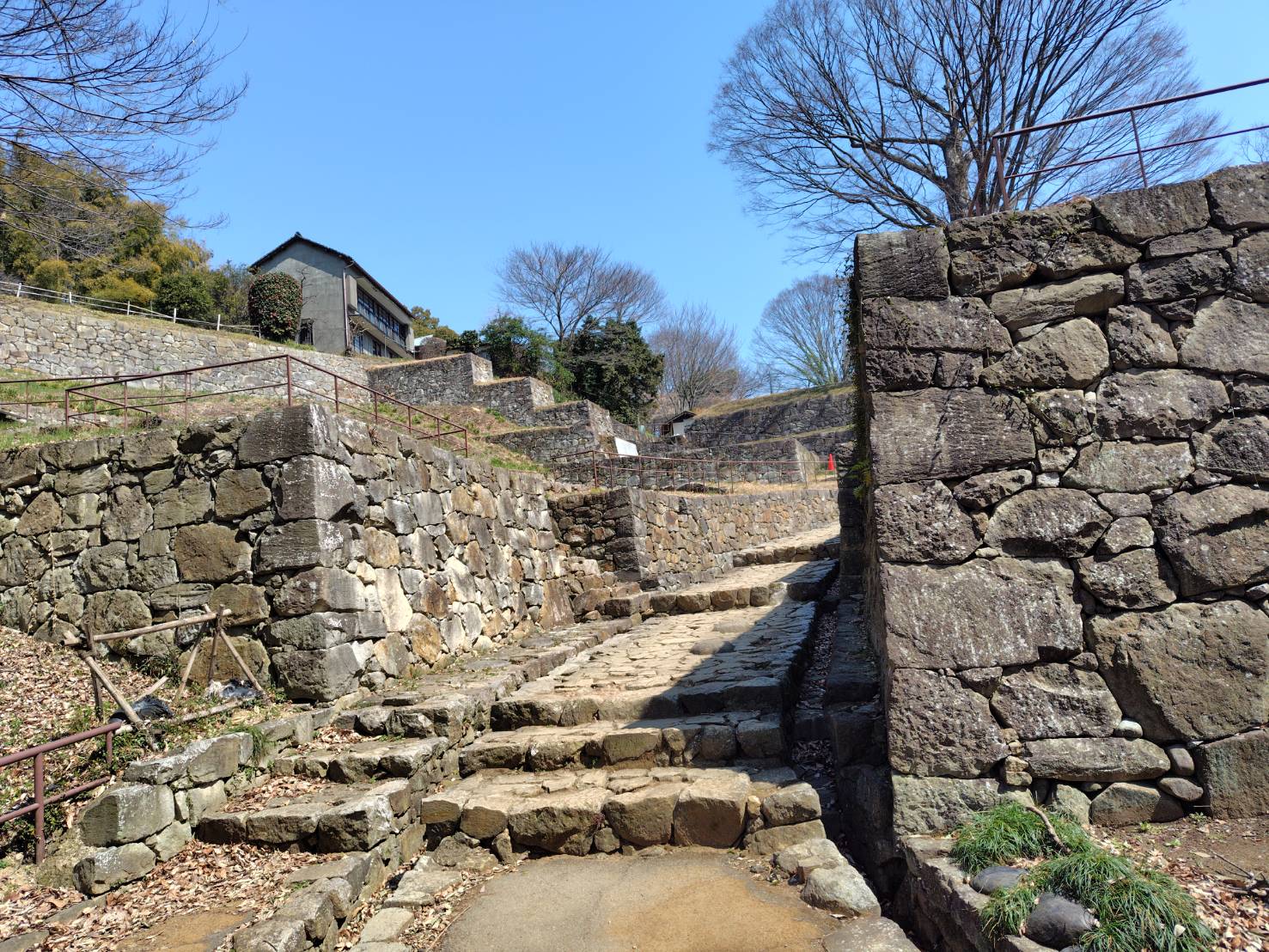史跡面積は97.8haです。関東の山城には石垣は存在しないという定説を覆した大規模な発掘復元事業で登城道や大手虎口などに復元された堅牢な石垣が見どころです。国指定史跡、日本百名城。