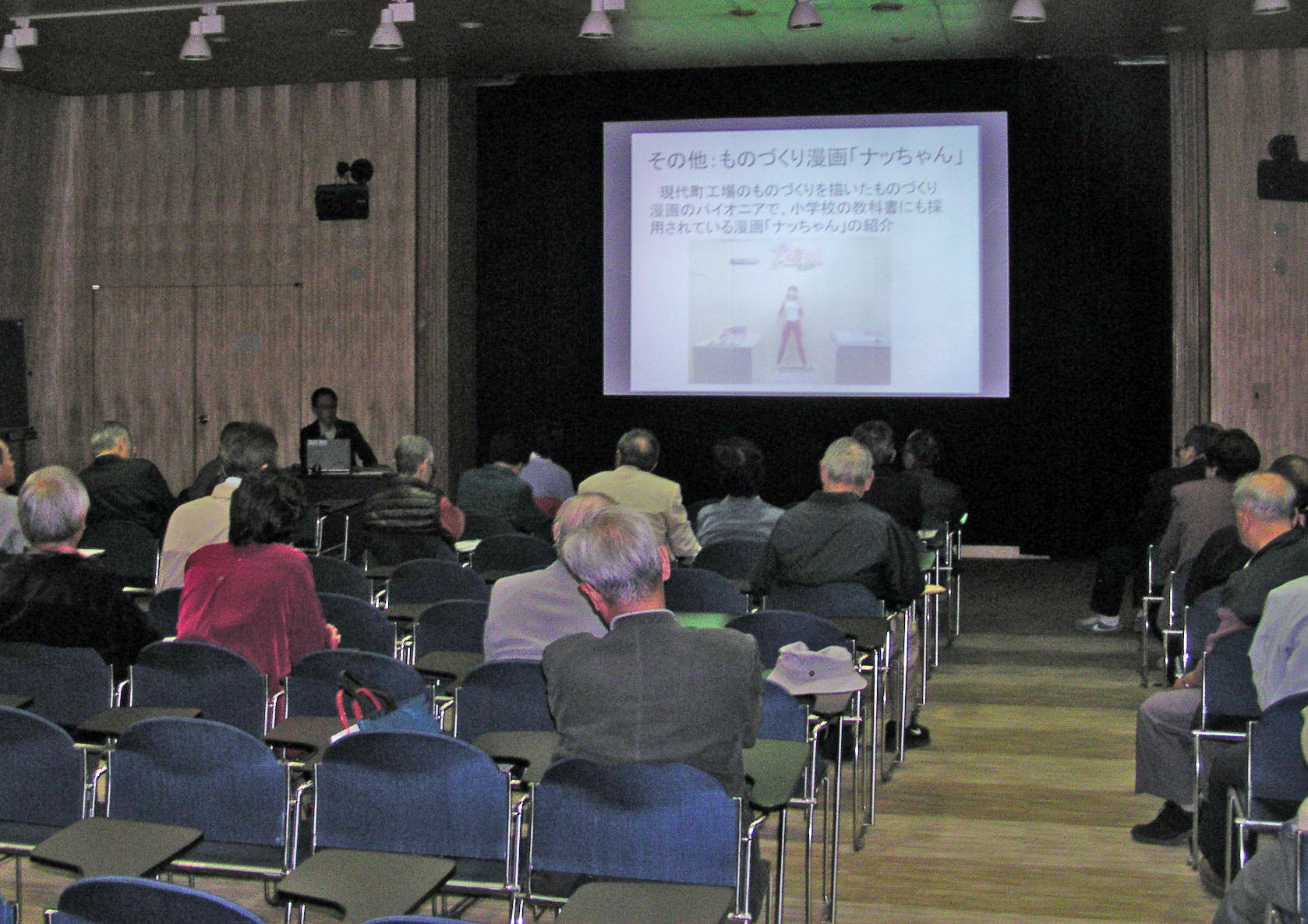 活動はすぐにはじまり、おそらく県内の郷土研究会などと連絡をとり、マスコミへのPRも行い、4月に発足。会長は宮川進氏。当初から現在のような博物館ロビーでの受付もやっていたようで、120名ほどの賛同者を集めて、さっそく8月には最初の見学会として嵐山の史跡の博物館に出かけています。会報の誌名も「JUNO」となり、10月に創刊号が発行され、現在に続いています。11月には会員200名との記載があります。当初から活動の主体は講演会と見学会でした(写真は2012年10月のミニ講演会)。のちに「クラブ活動」という自由な活動が加わります。この活動の開催時期や内容についてはホームページの「活動記録」にすべて掲載しています。それによると、2025年末時点で